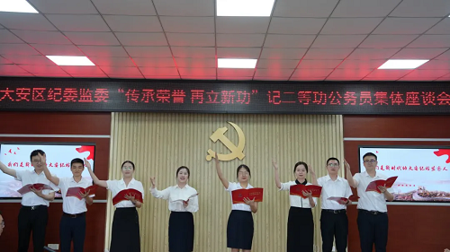 为贯彻落实好自贡市记二等功公务员和记二等功公务员集体奖励大会精神,大力宣传先进典型事迹,强化干部职工集体荣誉感,推动全体干部将荣誉感转化为实干行动,形成“传承荣誉、再创佳绩”的浓厚氛围。5月28日下午,大安区纪委监委开展记二等功公务员集体先进事迹座谈暨办案拉练活动,活动分为记二等功公务员集体先进事迹座谈、办案拉练活动、领导讲话三个环节。