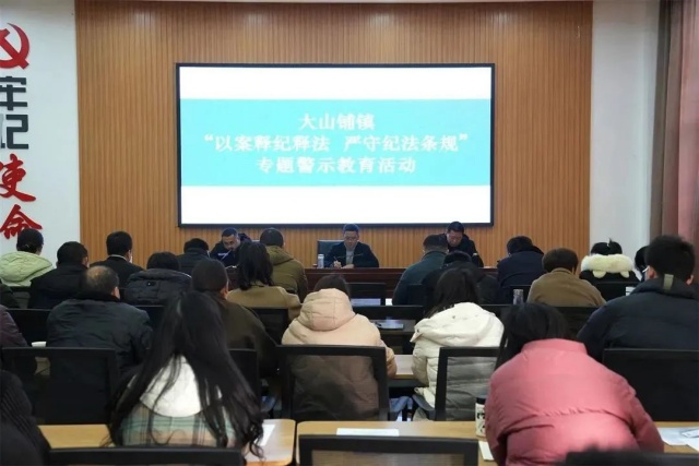 为进一步加强对党员干部的纪法教育,深刻认识酒驾醉驾的严重性和危害性,严明纪律规矩,杜绝侥幸心理,引导党员干部切实增强遵纪守法意识,12月27日下午,大山铺镇组织召开“以案释纪释法 严守纪法条规”专题警示教育活动,镇党委书记许明友出席活动并讲话,会议由党委副书记、镇长陈铋主持,镇班子成员、全体中层干部、村(社区)书记、两新党组织负责人参加。