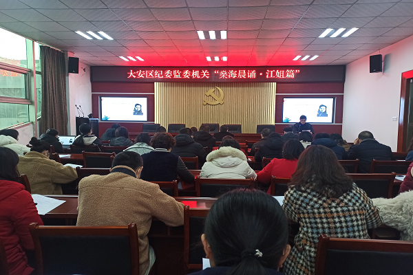 为贯彻落实区委理论学习中心组(扩大)会议上对大力弘扬江姐精神品格的要求,引导广大纪检监察干部深入学习两会精神,凝心聚力共促大安发展。11月23日上午,大安区纪委监委晨诵活动专题学习了江姐对党忠诚、坚贞不屈的革命精神。