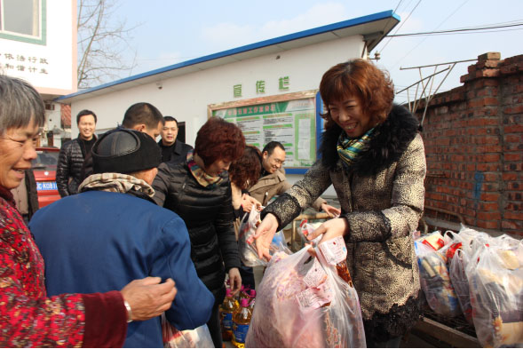 在永和村人口文化站里,钟淳书记向镇村干部仔细了解了17户贫困党员困难群众当前的生产生活状况和家庭收入情况,向大家送上了党和政府的关怀和鼓励,并将新年的祝福和慰问物资,连同组织的关怀和温暖送到了每一户贫困户的手中。
