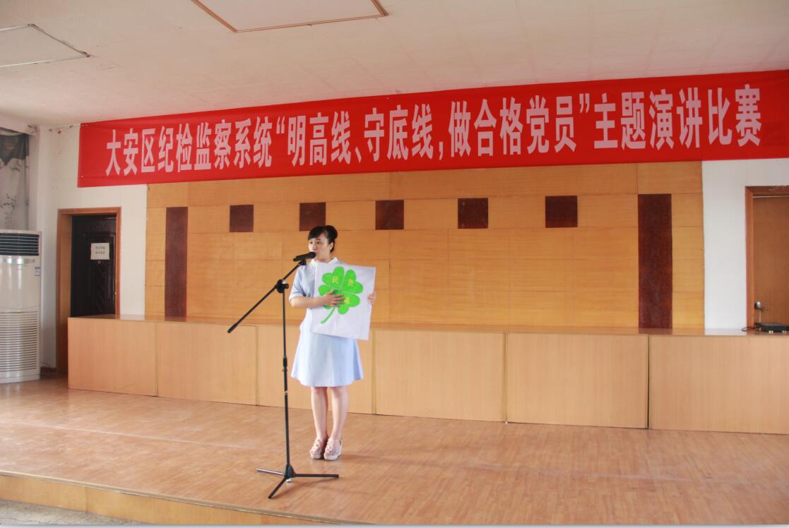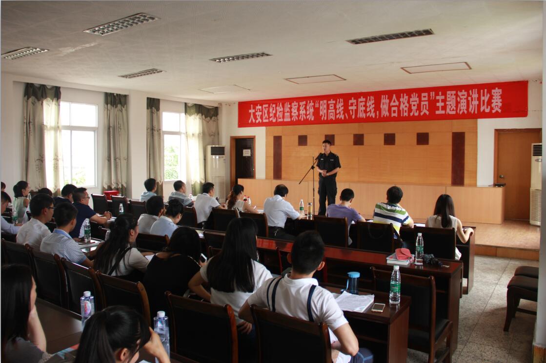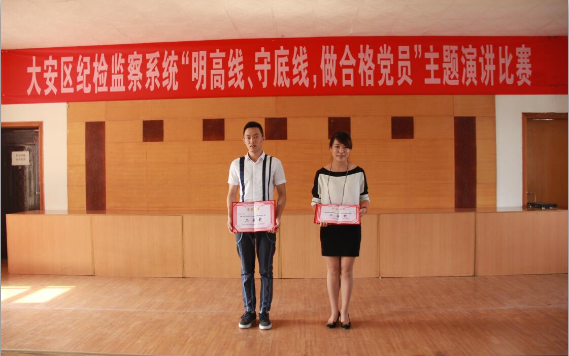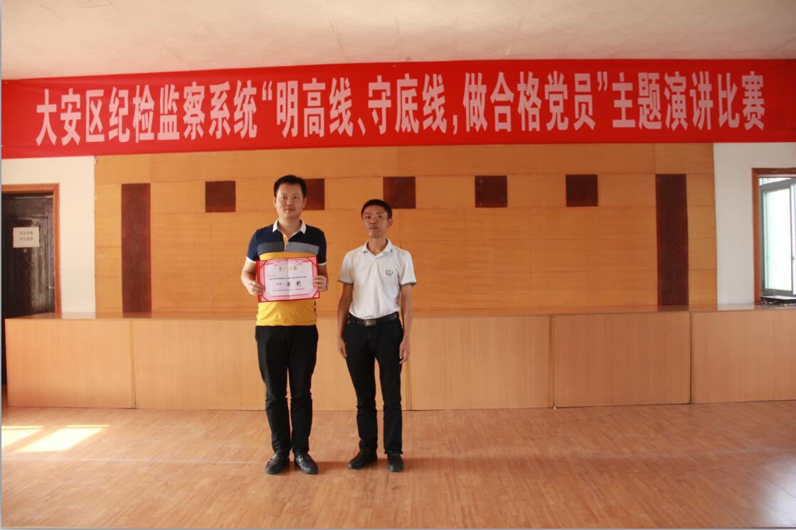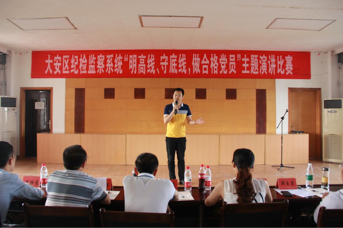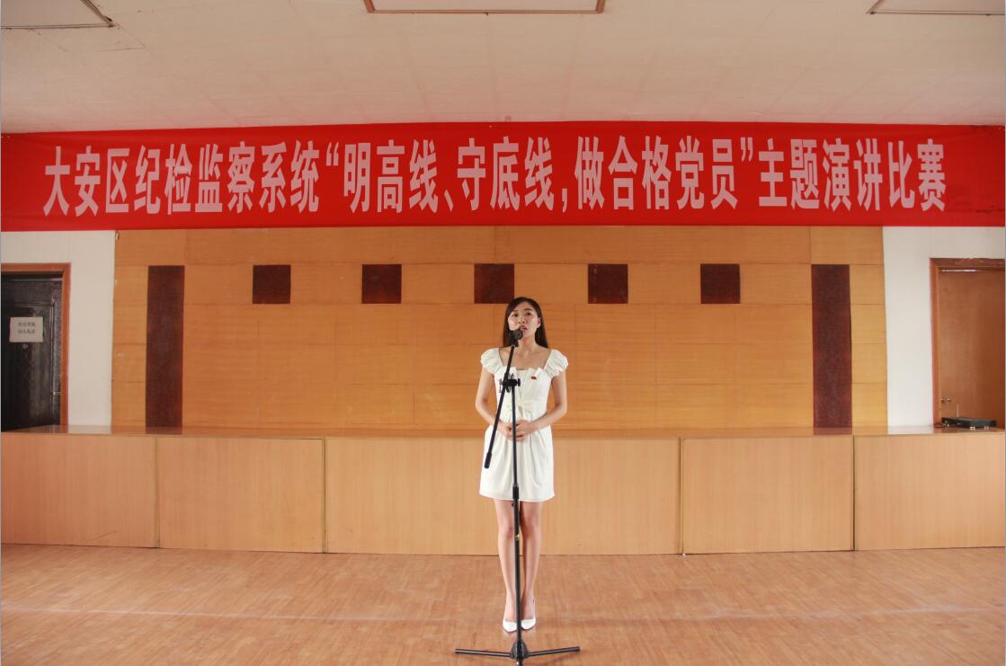 为持续深入推进《准则》、《条例》及“两学一做”系列学习教育活动,切实提高全区纪检监察干部的综合素质,展示纪检干部风采,经过精心策划与周密安排,由大安区纪委主办的全区纪检监察系统“明高线、守底线,做合格党员”演讲比赛,于6月22日在区政府东七楼会议室圆满落下帷幕。