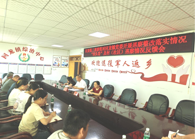 区委第三巡察组有关同志、回龙镇党委领导班子成员及被巡察村(社区)主要负责人出席现场反馈会议。