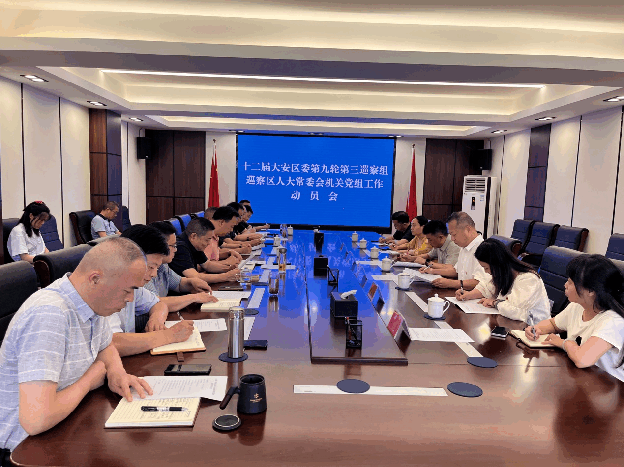 根据区委关于巡察工作的统一部署,2025年5月29日,区委第三巡察组巡察区人大常委会机关党组工作动员会召开。动员会上,区委第三巡察组组长钟文彬通报了巡察任务和工作安排,区委组织部常务副部长、区委巡察工作领导小组成员谢荣旭就做好巡察工作提出要求,区人大常委会机关党组书记吴洪主持会议并作表态发言。
