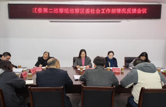 根据区委统一部署,2026年1月8日,区委第二巡察组向区委社会工作部反馈巡察情况。区委巡察工作领导小组有关成员主持召开向区委社会工作部主要负责人的反馈会议。区委第二巡察组组长反馈了巡察情况。会议传达了中央和省市区委有关巡视巡察工作精神,提出整改工作要求。区委社会工作部部长主持反馈大会,就做好巡察整改工作作表态发言。