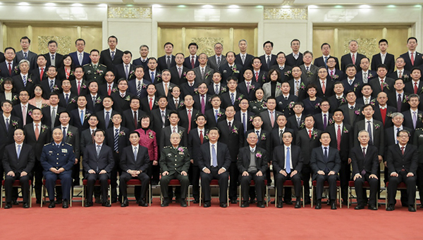 1月8日,2018年度国家科学技术奖励大会在北京人民大会堂隆重举行。会前,党和国家领导人习近平、李克强、王沪宁、韩正等会见获奖代表并同大家合影留念。(新华社记者 谢环驰 摄)