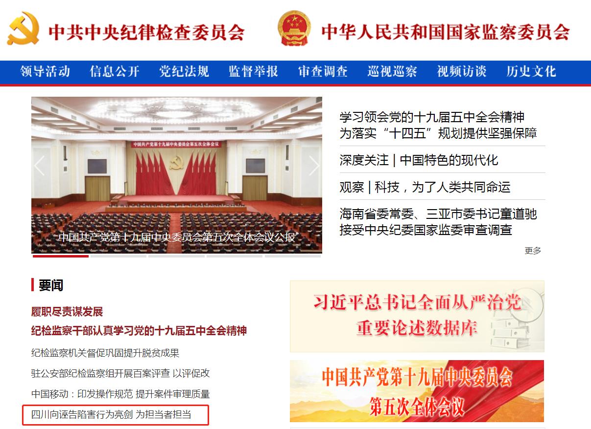 10月26日,四川省纪委对4起诬告陷害党员干部典型问题在全省予以通报,旗帜鲜明为敢于担当的干部担当、为敢于负责的干部负责,坚决向诬告陷害者亮剑,引导依法理性、实事求是反映问题。